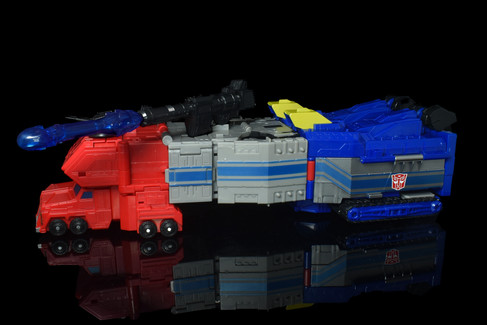 As the Thirteenth Prime, Star Optimus Prime interacts with the other Age of the Primes releases, either posed alongside them in Robot Mode - albeit dwarfing them - and interacting with them in Vehicle mode or Fortress Mode. In the latter, the parking bays can be used to house the likes of Alchemist Prime, Solus Prime, and Prima Prime.