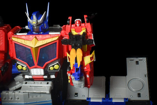 Hot-Rod’s main interaction with the Star Optimus Prime is in base mode where he can man the front MT-13 gun platform or sit on another platform of his own, which is created by folding the smaller rifle into a piece that sits in Prime’s hand and allows Hot-Rod to sit at the back in a gunner's position. Hot-Rod can also take up a position in the chest cavity we saw earlier in a command position or communicating directly with Star Optimus Prime.