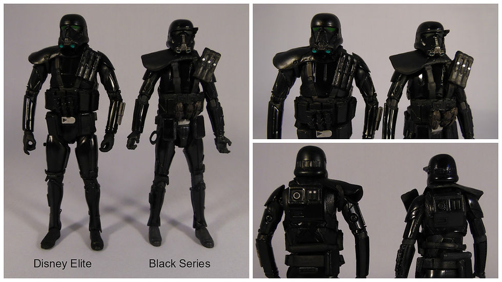 If you collect boxed figures, then the Elite series is one of the better looking packaged Star Wars ranges. If you are a loose collector, then for just a couple of quid more I would still plump for the Black Series every time. Comparing the Death Troopers side by side, then the Hasbro wins out on sculpt, paint and articulation. The Elite does have some positive elements like the weapons and the base. The Death Trooper Elite Series release is not a bad figure, it just is not as good as others in the same scale and price brackets. Where it will appeal is that this is the Specialist version of the Trooper with the added Pauldron and accessories - a figure that you can only get (at present) in the Black Series via a US only exclusive 3 pack.