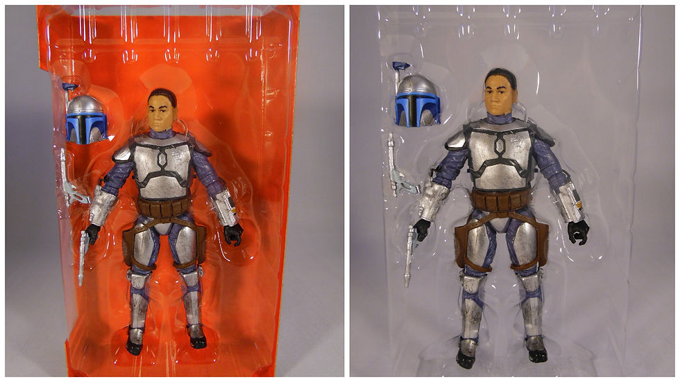 Jango Fett is #15 in the Phase 3 releases. Even though he is not from The Force Awakens, he arrives in identical Phase 3 packaging which cements Hasbro's plan to now integrate figures from all 7 movies and the Rebels TV show into mixed waves going forward. After so many TFA figures in the red & black box since the 4th September, it feels a bit surreal to now see Jango against that intense red backdrop. And I guess it will take a while to sink in.