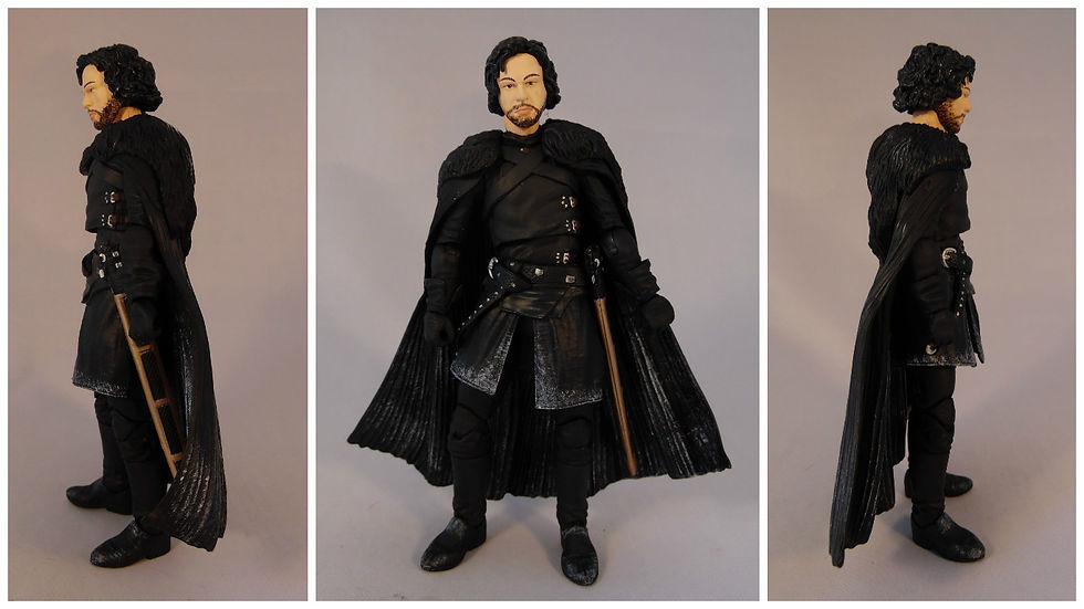 The head is not a great likeness to Jon Snow, it actually looks like an older actor with very little detail on the face other than some eyebrows eyes and a beard that looks a touch like mud rather than facial hair.