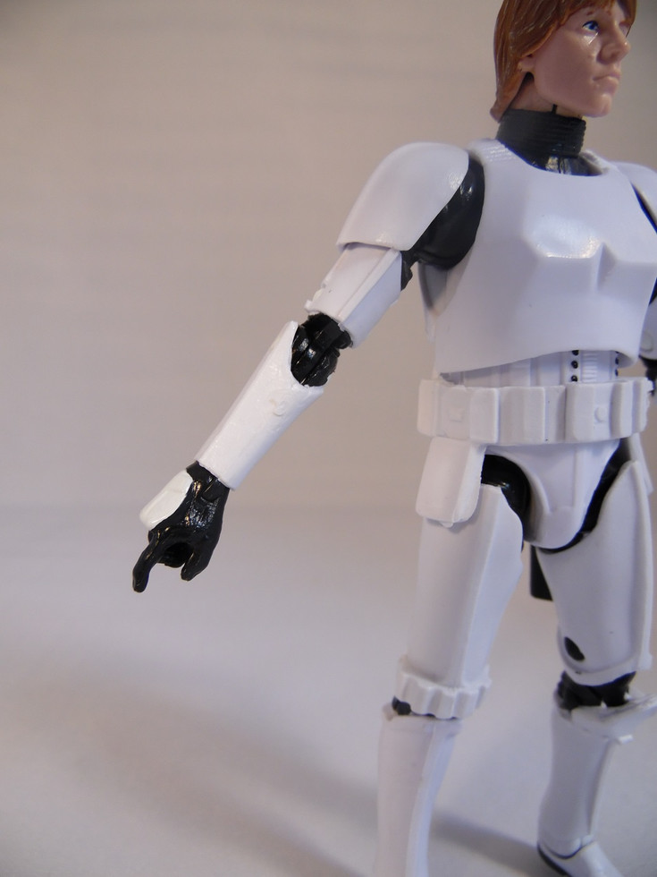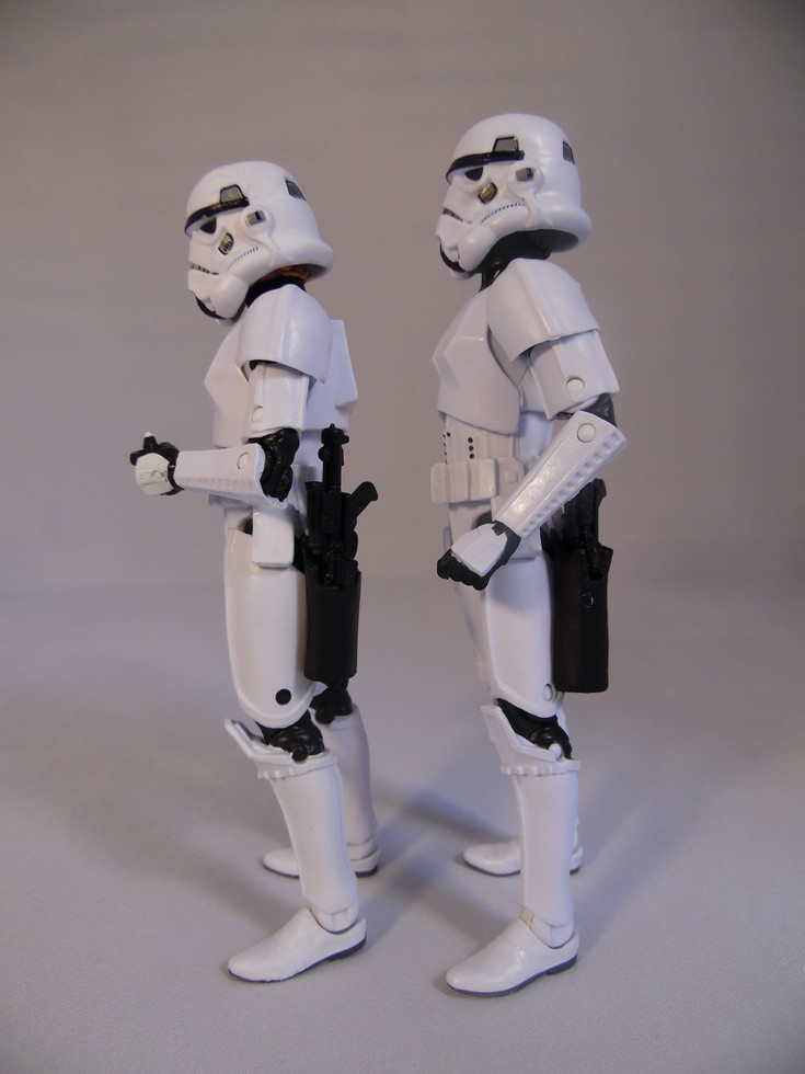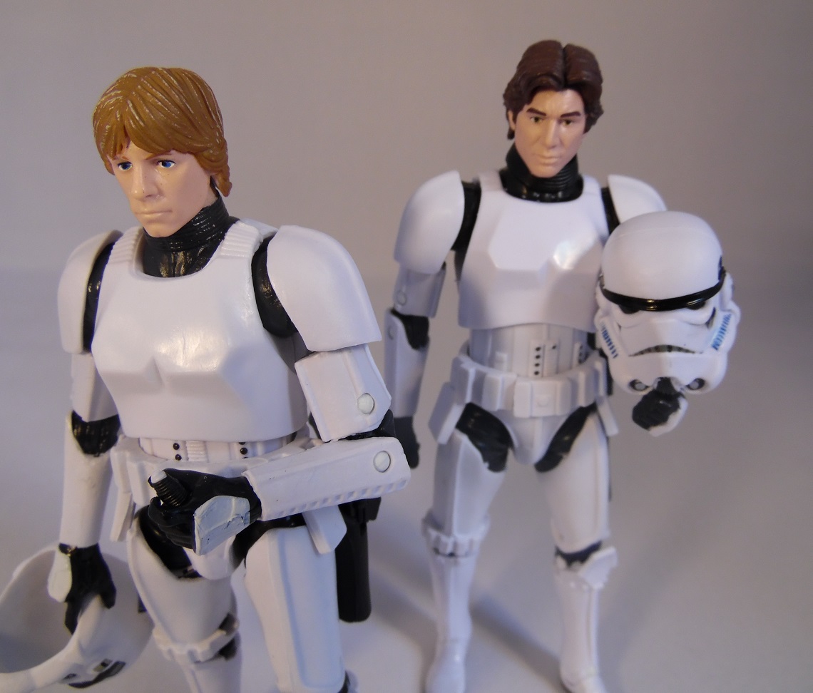 The Storm Trooper armour is nicely done as it was on the earlier Storm Trooper figures. Luke however feels cheaper and the plastic feels softer and there seems to be more of a yellow hue to the white armour when Luke lines up with Han or with one of the Wave 3 Troopers. There are also some messy patches around the joints and the ongoing issue where where the joint pegs were painted a different colour white to the armour still exists, and in fact gets worst as the knee pegs are simply left unpainted and black.