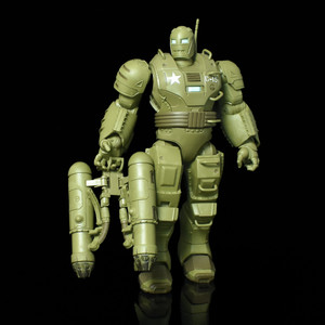 The first figures from Marvel’s What If? were released in 2021. These featured a full wave of standard figures, including a build-a-figure of The Watcher, and this Deluxe release of the Hydra Stomper. The Stomper was packed into a larger version of the scooped-sided Marvel Legends packaging with a large front window to display the figure and artwork to the sides and rear depicting the Hydra Stomper in action. The figure started to land ahead of the show airing and the rear text did include some spoilers as it details that this is Steve Rogers's suit, created for him by Howard Stark.