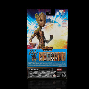 The Love & Thunder figures use the standard Legends box with no specific accent colour and rather a strong use of the blue through red scheme we see in the movie logo from the box front. The two side panels carry a mirror image of Groot and this is repeated again on the reverse. Beneath this is the checklist for the Korg BAF and to the side the background text that simply reads...