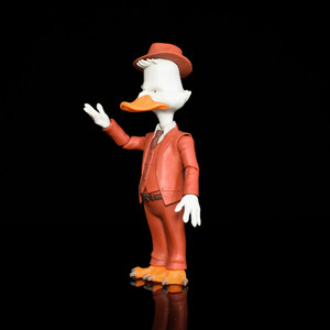 Howard’s head sculpt also uses the slightly off-white ‘duck down’ colouring and here the animated styling is more apparent with more exaggeration to his features including the slight ‘quiff’ of hair/feathers pointing out from under his trilby hat. The hat is an interesting choice considering he doesn’t wear one during his What If? Scenes - this may have been an early concept that Hasbro ran with, but that never made it to screen. There is no significant decor application to the head other than the black dot eyes and Howard’s bright orange duckbill.