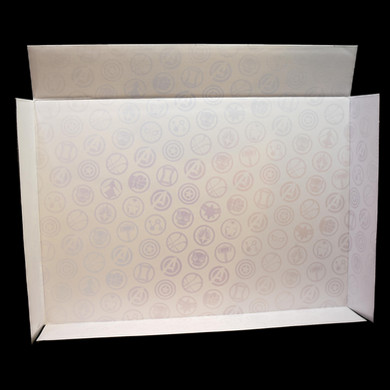 Out of the pack we have Iron-Man and Thanos in the usual inner plastic tray surrounded by their accessories and alternative parts. This itself sits in the inner cardboard tray that carries an array of circular icons relating to the many MCU heroes and characters.