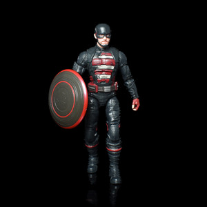 We do get his new shield, forged in the after-credits of The Falcon & The Winter Soldier. This is a revision of the existing shield from John Walker, removing the star from the centre and adding some scratches and damage into the cast plastic. The piece is coloured in a dark gun-metal finish with red inner and outer rings. Silver is then applied over the top to further imitate scratches.
