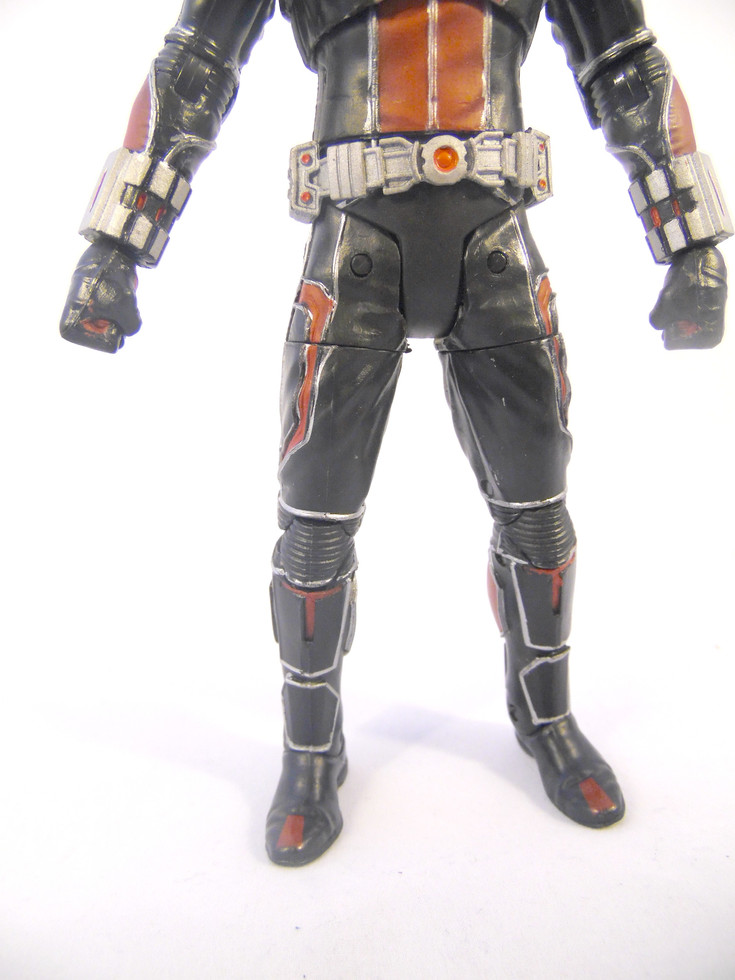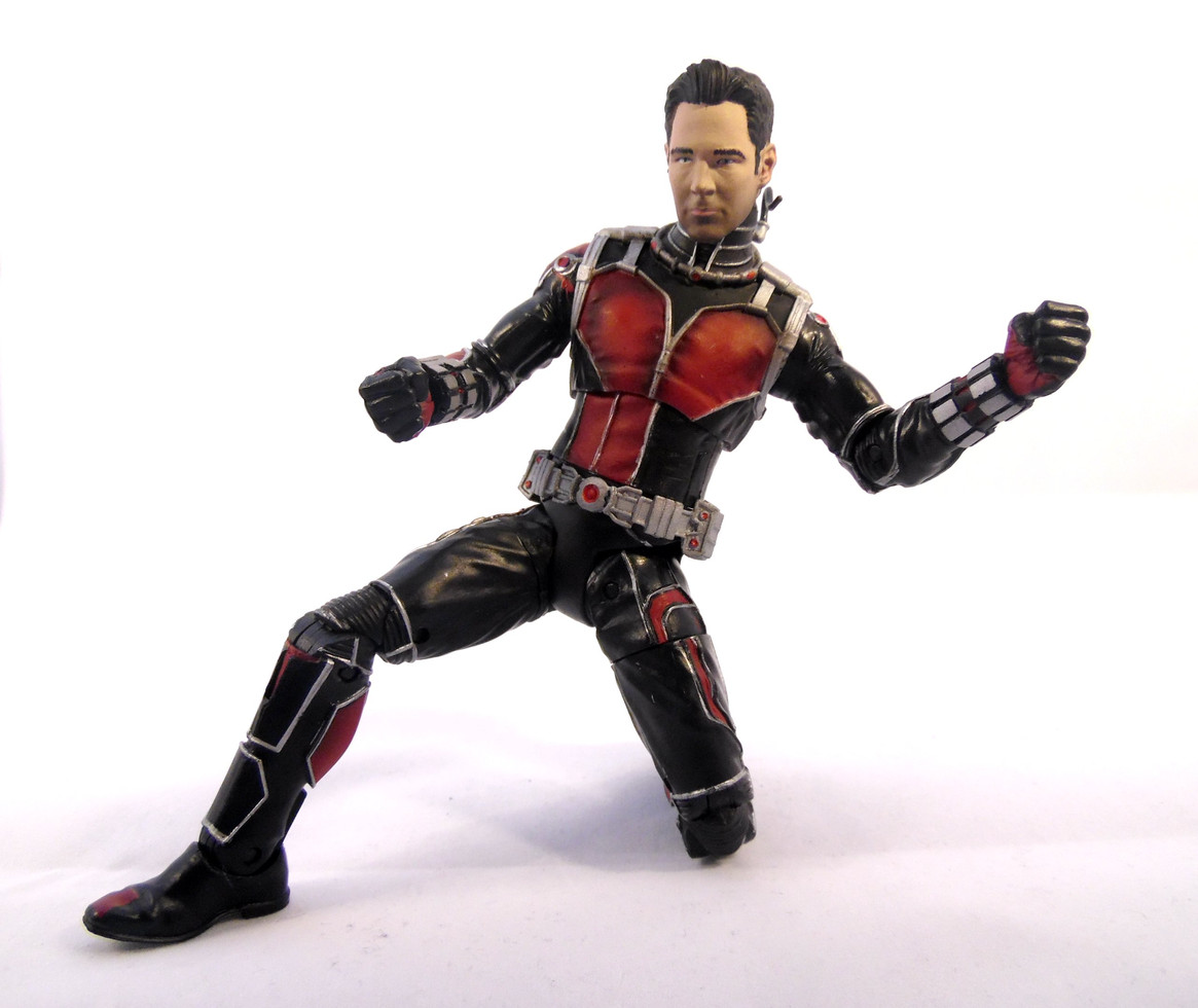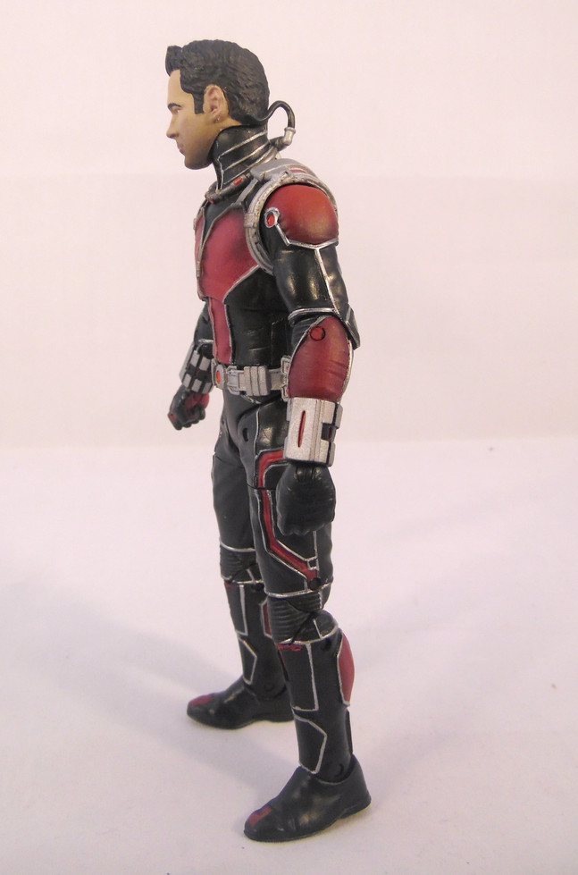 Ant-Man is arriving from Diamond Select in two versions. The first, announced back at New York Comic Con 2014 is a standard release containing a masked Ant-Man with mini Ant-Man accessory. This was then followed up by the announcement in June 2015 of a Disney Store Exclusive Ant-Man. It is this exclusive that has arrived in stores first and that we are reviewing today. Ant-Man, in his Disney store exclusive guise, arrives in slimmed down Marvel Select packaging which may frustrate seasoned MOC collectors. It is then interesting that the standard release (without the Paul Rudd head) is the normal full size packaging. The side artwork has however survived on both and Ant-Man remains badged under the "Avengers Initiative" which you can speculate with all you want as to where he will go after his stand alone origin film On the rear is a blown up image of Ant-Man but none of the usual blurb about the movie or character. With no other figures being released from the Ant-Man movie there is also no advertising of other figures in the range. Talking Disney Exclusive First - Once unpacked you are greeted with Ant-Man with his Scott Lang (Paul Rudd) head attached. In the inner insert you will also find his masked head, two additional pairs of hands and a mini Ant-Man. It is worth mentioning that at the time of writing, my Ant-Man has a faulty helmeted head with part of the side completely missed at the factory. Disney Stores customer service is awesome and a replacement is forthcoming, but have pressed on with the review. I hope to update the gallery with additional images when the replacement arrives. Ant-Man stands dead on 7" high, so the same 1/10 scale as the other MCU figures released to date. The body sculpt is very good and includes the various panels and trim that you see on the movie costume. There is plenty of detail built into the suit like the neck and shoulder machinery and similar details on the wrist and across the belt. The masked head is really nice and is a decent representation of the new movie mask, with panels either side of the head that connect into breathing pipes that are part of the back of the figure. The alternative Paul Rudd head is not a bad likeness considering DST's track record on head sculpts. Yes, its not up to NECA standards - but they are certainly getting closer to emulating the results they got on the 2013 Wolverine. Paint wise the head is neat enough but I am really not sure if the chin is meant to be stubble or dirt? He also comes with 3 sets of hands. The first set are fists. The second set with open palms and the third set with a wider grip. With no accessories as such to hold, the hands seem to be purely for poses with the exception of the wider grip which can hold the masked head as though it were a helmet - a pose I kind of like. Paint across the rest of the figure, at first glance, looks great with the figure being made up of a predominantly black suit, red panels and silver trim. All the areas that needed to be painted are all neatly done, but sadly the factory seem to have been over generous with the red and silver paint. There is no bleeding of paint as such between areas, but there are messy splotts of paint which is disappointing. The majority of these are silver spots, but on my figure is a huge splodge of red on the left shoulder as you look at him. The paint defects are the first I have seen to this degree with a DST figure and I may have been unlucky, or was the factory rushing to fulfil getting this into Disney Stores ahead of the film (and standard figure) release? Articulation is the usual standard you expect from DST. The head rotates side to side and looks up and down, and is pretty easy to swap out. Ball jointed shoulders allow the arms to move out perpendicular to the body and then rotate around that axis, so they can even get almost vertical above his head. There is then an elbow joint and swivel and pivot wrists - with the hands all coming off and going back on very neatly with little effort or that feeling of "am I going to break this" The chest joint simply allows you to rotate the torso left or tight, it has no back or forth movement. If you wish the torso can rotate a full 360 degrees, but as the red chest panels are meant to line up with those on the stomach I sense that the chest joint wont get move too much by collectors. The hips are a two way joint so can move out to the side, or swing up, although not quiet enough to get into a sitting position or that Iron Man-esque fist punching floor pose we have seen in a couple of trailers. The knees are jointed, and the rockers on the ankle make him easy enough to stand. But what of the 2nd figure? Well this is a lovely touch, a 1.5" non-articulated Ant-Man. As you can imagine at this scale the sculpt is not as good as that on the main figure, but its pretty close with visible detail in the helmet and belt area. He is also pretty nicely painted, but like big brother also has a couple of silver spots in the wrong place from messy painting. The missed opportunity for me however with the whole figure is the lack of that signature DST base, which would have been brilliant as a miniaturised set like a shower plug or similar. If you look at the vanilla release (masked head) there is no difference at all to the Disney exclusive other than the thicker packaging. When I saw both figures I was unsure why anyone would buy the basic version, but if you are a MOC collector then I can see why the bigger size packaging would fit with a collection. For marking I am going to ignore the helmet issue which is a factory error and is being resolved by Disney without fuss. The sculpt and articulation are great, the paint not so much and it is those lazy paint drops and the missed opportunity of a diorama base that stop Ant-Man getting top marks. 4 out of 5 from me for both versions.