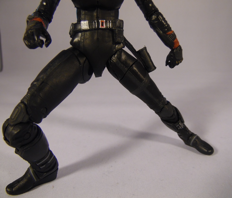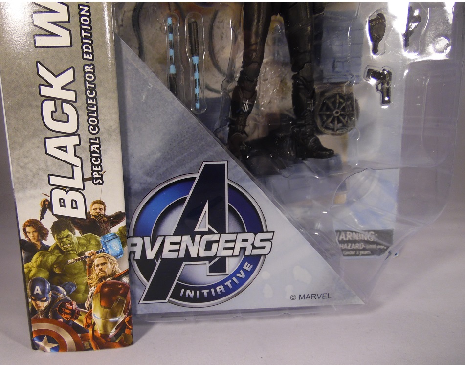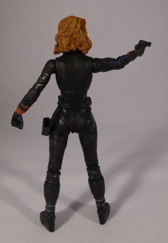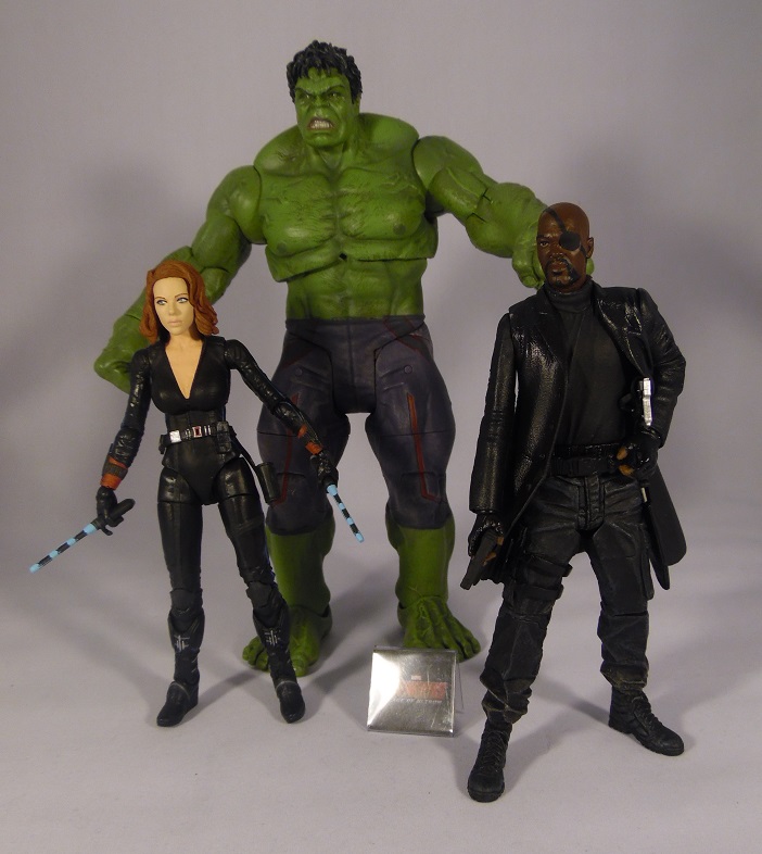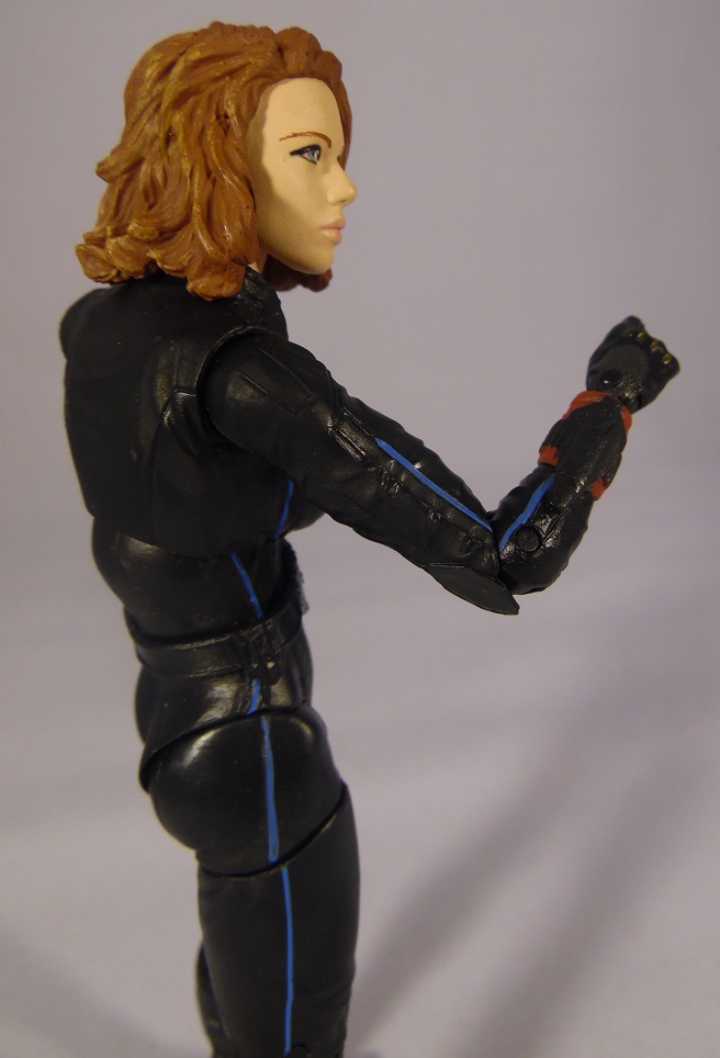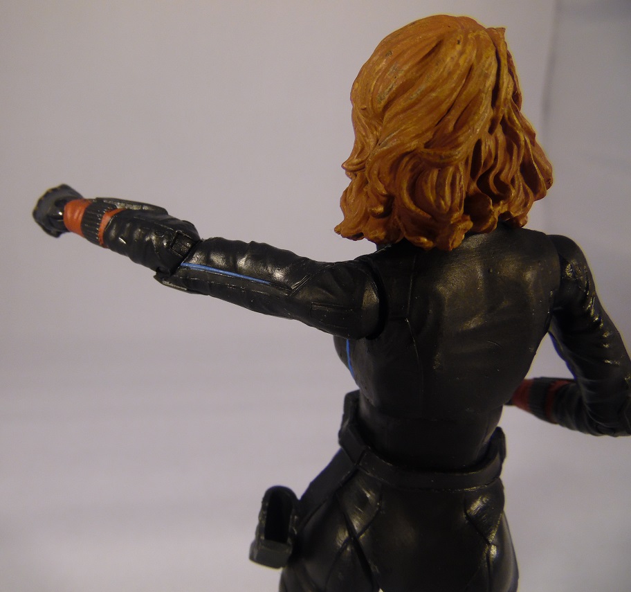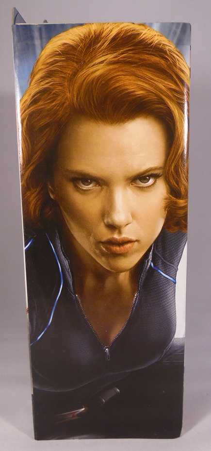 It has taken a little over 4-years, but Diamond have lived up their commitment to bring us a Black Widow figure and allow fans to finally Assemble the original 6 Avengers, albeit in varying outfits from the Marvel Cinematic Universe. Widow arrives alongside two tweaked figures in Thor and Hulk, and one might speculate that Diamond had to go with re-use figures in order to support a Black Widow figure - particularly when other companies never go much further than what they class as the Big 4 Avengers (Iron Man, Cap, Hulk and Thor). Widow arrives in the standard Select packaging and in the matching grey colouring they have used in 2015 for the Age of Ultron figures, and for the 2015 Ant-Man. The Avengers Initiative logo sits in the bottom left of the front panel and the character artwork panel is as striking as any I have seen so far. On the rear of the packaging is a small bio of Black Widow along with an action shot. What is interesting is that unlike other releases, the main action shot on the reverse is of Scarlet Johansson as Black Widow and not a shot of the figure - this was also found to be the case on the back of the Hulk & Thor packages. We can speculate as to why, but the simplest answer is probably the packaging went to print before the figure was signed off. Once out of the box Widow stands 7" high and when lined up to fellow Avengers she fits, albeit I would have expected her to be shorter than Hawkeye... Widow comes packed with the other half of the Age of Ultron themed base that we saw in the Thor pack (see above) more on this at the end of the review. Also packed in are a set of alternative hands, a pair of batons and a hand gun. Even though sculpted in the main by Gentle Giant, face sculpts have never been really strong with Diamond figures (Wolverine aside) but in this case it is a good likeness for Johannson and the hair in particular is really well sculpted. They have used a slightly too pale skin tone for Widow which does throw the face off a little, but the eyes and mouth are neatly done and the temptation to go with a ridiculous red lip gloss has been avoided unlike other female characters we have seen in other lines. The eyes on mine are looking to her right which you can see in many of the images below. I am not sure if this is intentional, but I think it adds character for my display. The hair is a good colour match and has both darker wash and brushed highlights to give it real depth. Onto the body and the proportions are pretty much right - so Widow doesn't look like a Barbie. The jumpsuit itself is very plain and painted a flat black, and the sculpted has "unzipped" the top a little further down than maybe Scarlett would have liked. When you start looking the jumpsuit is brought to life with varying panels and gadgets around the wrists and an electric blue stripe down the sides of the torso and down the arm. A separate belt piece sits neatly at the waist and provides a holster for the hand gun. Down into the legs and there are sculpted knee panels and a thigh strap which I think is meant to look like part of the holster. Instead of leaving these black they have been painted a different shade which is a nice touch. The boots are the most complex element of the costume and finish the costume nicely. Well done so far Diamond. The batons that are supplied are a representation of the ones Widow uses in Age of Ultron. Sadly the blue paint doesn't work. It is too light and in no way represents the electric batons we see in the movie. The gun therefore is my preferred weapon of choice, but there is only one. I would have loved to see two of them and allow fans to have a go at that famous two handed weapon pose from the first Avengers movie. Articulation starts with a ball jointed head that can rotate a full 360 degrees. Shoulders are ball jointed, and with Widow being in a tight fitting jumpsuit there is a massive range of motion both out to the side and up over the head. The elbows are jointed and the hands on both a swivel and a pivot. I am not 100% clear why a 2nd pair of hands has been provided as there isn't much difference between the two. They swap out easily enough, but I have found the set fitted in the packaging is sufficient to hold both the batons and the gun. Widow has a torso joint with another good range of movement allowing her to lean forward and lean backwards and to swivel her top torso to either side vs her waist. The waist itself is fixed as are most Select's nowadays. The hips are ball jointed and can move to the side to a splits position and also forward to an almost seated position. There is a thigh swivel which helps if you are going for an action pose - but sadly once turned the blue line of the costume doesn't line up and the thigh starts to look a peculiar shape. The knees bend on a double joint, as do the ankles. The cleverest part is a pivot half way between the ankle and the heel of the shoe which lets you get the leg out to the side while having the foot still planted flat to the floor. This allows for some nice crouching positions. The base that comes along with Widow is "OK". It's nothing special and doesn't scream Age of Ultron too me. Perhaps with some smashed Ultron drones in place it would have been elevated, but as it stands it is pretty average. There is no complexity in connected it to the Thor base, they simply but up against each other with no fixings. My only key issue as I write this review is quality, something I haven't really ever had a problem with on Marvel Select figures until this year. The Widow I received came out of the box with a removable left leg. It is not snapped, but rather the joint is mis-formed which means the leg pops on and off at will, mostly off when am trying to get her posed. As a one off I would put this down to factory error, but I had a similar factory mould issue on Ant-Man a month or so ago and have heard similar stories from other collectors. At this point I am awaiting a response from the sto