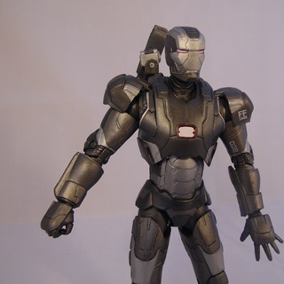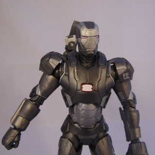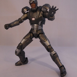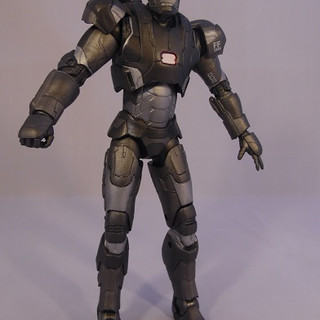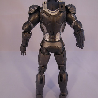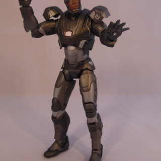The mark 2 War Machine in terms of the Marvel Cinematic Universe never appeared on screen in Iron Man 3, but was still released by Diamond Select as part of their Iron Man 3 figures. The Mark 2 did appear in a comic prequel to the film which showed Tony Stark presenting Rhodes with an upgraded set of War Machine Armour. On screen the Mark 2 would get a paint job and go on to be the Iron Patriot - more on this later. The standard Mk2 release comes in the usual packaging we expect from Diamond with the usual high quality artwork on the side panel, and images of the figure and its counterpart (the Mark 43) on the reverse along with some detailed blurb about the figure. Once unpacked War Machine comes with a variety of "bits". Firstly there are two heads, the standard head and the unmasked James Rhodes. There is then the rear cannon which arrives in one piece, and the Hall of Armour diorama piece which is packed flat in 4 individual pieces. The sculpt is top notch, but I have come to expect as much from Diamond's 7" Movie range. As the whole figure is armoured the sculpt is broken down into various panels and pieces which are all very well detailed and link into each other - in many cases cleverly hiding one of the articulated joints. The head sculpt, or should I say face sculpt, of Rhodey is a good likeness for Don Cheadle. The paint on War Machine is pretty basic in terms of being two toned metallic. That being said all the pieces are well covered and there is no bleeding into corresponding panbels. The chest piece is painted with a red hue around the arc reactor and there are some nice decals on the arms and shoulders that link in to War Machines position in the US Military. My own gripe on the painting, and this likely varies by figure, is that my Rhodey eyes are a little "bog eyed". Articulation is very similar to the Mk43 Iron Man. The head is jointed and can look to either side and has a bit of up and down movement. The shoulders are ball jointed and cleverly covered by a shoulder pad which moves with the arm. There is an elbow joint and then a rotate and pivot joint in the wrist, all allowing War Machine to get into some decent poses with the arms - including that all important firing stance. These shoulders are prone to snapping. so be careful when posing the arms. As usual there is a torso joint which allows the torso to swivel side to side and gives War Machine a bit of range to lean forward and backwards. The legs are ball jointed at the hips and are quite exposed like the IM43 but in this case because the whole figure is grey the ball is less noticeable. Having the hips done this way allows for War Machine to have a greater range of movement as opposed to the early Iron Man armours which were heavily restricted by the sculpted hips (see Iron Man Mk6). The knees bend and there is a decent swivel and pivot joint at the ankles. That means Rhodey is pretty stable on his feet and stands very well. The only issue I have found, like many Selects, is a very loose leg which does tend to see the figure naturally slide into the splits. The head swaps easily enough, but I wouldnt want to do it to often as I would expect the paint to rub pretty easily. The shoulder cannon slots into a hole in the back and then swivels round and bends to a firing position. The mechanism isn't great and feels a bit flimsy so I think most people will leave it folded over the shoulder. The base is nice enough, albeit a bit plain and technically a little short once the figure is inside. All in all War Machine Mk2 is a solid figure with plenty of good points. The wobbly leg syndrome is worrying, and the cannon is not as great as I imagined. But he certainly deserves a 4 out of 5.