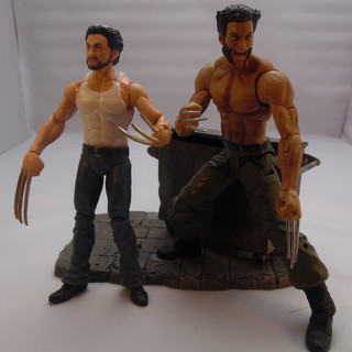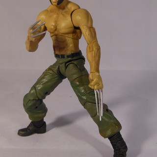 Despite a number of comic versions and a wealth of films to pick from, Diamond Select have only ever done two figures from the X-Men film series - both of which were the iconic Wolverine. The first was in 2009 and based on Logan's appearance in X-Men Origins. This early figure, in jeans and white T-shirt, was updated in 2013 with a brand new version as seen in the standalone Wolverine film of the same year. Wolverine, in both instances, is becoming a real grail figure for MS collectors and in particular the newer version which was a huge improvement on the first in terms of sculpt and articulation. I was lucky enough recently to get hold of this newer Logan and I am so pleased to be able to review him for you today. Wolverine comes packed with a plethora of options which means from one figure you can achieve a quantity of different looks. There are 3 heads in the pack, one is neutral, one is snarling and one is screaming. You can then choose classic Wolverine "bone claws", or the more iconic Adamantium claws. And if neither of these are too your liking, you can stick with normal hands. Normal Hands? I hear you cry, why on earth would we - well the normal hands are there to hold the samurai sword which also comes packed in. With all these accessories you can forgive DST for not packing any background pieces which was included in the original 2008 figure Starting with the sculpt and this is probably the best Movie Select that Diamond have done to date (May 2015). The heads are all a striking resemblance to Hugh Jackman, and all three of them capture an iconic look for Hugh from the films, The chest is sculpted really well with lots of definition on the muscles, this continues down the arms and to the hands which are all well designed. Hand set one is the bone claws (pre Weapon X), set two are the classic Adamantium claws and set 3 are plain to hold the Samurai sword that is also packed in with the figure. The trousers, are fairly plane but work well and the figure is finished off with some nicely done army boots. The only criticism you could heap on the sculpt is the decision to do Logan as we found him at the start of the movie, rather than in say a white vest or leather jacket. Paint is superb also, bringing out all the detail in the face, particularly the eyes and teeth. There is subtle shading on the skin and hair is painted on the chest and arms which at this scale, and on what is essentially a £20 figure, is really well done. The pants are painted green with a brown wash to dirty them up and there is a similar highlight layer on the boots. Articulation, and we still haven't found a downside. The head is ball socket for swapping out with the 3 options, but can also revolve a full 360 degrees and look up and down. Arms are on a ball jointed shoulder so can be moved 90 degrees out from the body and then swing back and forth with a good range to get them to either straight out, straight back or even straight up over-head. After the ball joint shoulder there is a biceps swivel to further aid movement and a standard pivot elbow. The hands are then on a standard joint but also rotate. The chest is jointed, and here is a niggle as if you lean Logan too far back on the chest joint you can see a noticeable gap - not that you will ever use that position as Logan will always be leaning forward menacingly. The hips are ball on a two way joint, and without any bulky armour or cloaks this is the first select figure you can get into a true sitting mode. There is then a thigh swivel, double jointed knees and ball jointed ankles. All in all this allows Logan to get into plenty of dynamic poses. So what's the downside? Well nothing really, Movie Wolverine is as close to a perfect figure at this scale and price point as you will get. In fact I will go as far as say that the head sculpt is knocking on the door of some of the higher end product in terms of quality. I can gripe a little about the choice of outfit, but then again if you stuck a jacket and vest onto Logan you would love the articulation which is as much of a contributor to this figure as the sculpt. The only downsize is getting hold of the figure, which is already circa £60-£80 boxed and around £30-£40 loose (prices as of June 2015). Wolverine deserves nothing less than 5 out of 5, and I hope that at some point in the future that Diamond / Marvel / Disney (whoever is restricting the range) can see their way to give us both additional Wolverines (this head would have worked great on a Days of Future Past Wolverine) and some more of the great characters from the X-Men Movie Universe.