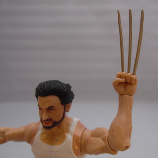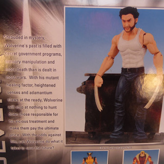 In 2009 Diamond Select Toys took their Select range of 7" Marvel figures and applied the format to the first Movie figure, that of Wolverine from the 2009 movie X-Men Origins : Wolverine The figure that "started it all" is now highly sought after, and I was lucky to pick this up recently from Evilbay at a sensible price and meant I had now effectively completed my Select Movie collection (variants aside) until the 2016 figures arrive. Wolverine comes in the standard Select packaging and would still fit with any Mint on Card collection nowadays despite being 6 years old. The big variance of the packaging that you would notice is the lack of a graphic on the left panel, instead this is a black panel with the X-Men Origins text. Once out of the box the first thing that will strike any Select collector is Wolverine's size... he is far too small. At 6.5" high Logan is almost Legends scale rather than the now established Select sizing. He is dwarfed by his 2013 do-over and by all the other Select Movie figures, including Widow and Hawkeye. Putting the size of Logan aside, the figure is a half likeness to Wolverine, but more a cartoon representation than looking anything like Hugh Jackman. The face is sculpted in what I assume should be a snarl, but ends up looking a little bit like a forced smile at a Wedding. The paint applied to the face and hair is a tad too shiny and there is no wash or dry-brushing to add depth. Down to the torso and the chest and arms are sculpted with some nice muscle definition. The chest has a sculpted white vest which is painted, like the head, in a shiny finish and has no definition or weathering. The chest skin tone is also very glossy and a different shade to the arms. The one redeeming feature of the top half are the bone claws which are nicely done. The bottom half is a set of jeans which do appear to have had a bit of paint work on them to look weathered. The flared bottoms of the jeans are a nice nod to the era the movie is set, and under them are the cowboy boots that Logan wears in the film. Articulation isn't too bad on the figure with a ball jointed head that turns a full 360 degree. Arms are fully articulated on a ball jointed shoulder, elbow joint and wrist swivel. These mean you can get the arms into a variety of menacing poses. There is no torso joint that fans nowadays would expect, but the waist does swivel. The legs are ball jointed at the hips and can get out to a spread position, but not into the splits. The knees bend, with the joint pretty nicely hidden, and the ankles rotate to allow you to stand Logan with a good degree of stability. The scenic base and dumpster are pretty nice and add a bit of theatre to the Wolverine display. It is nice to see a peg in the base that allows you to drop Wolverine on it and then the peg holding him secure enough so you can pose him on one leg in an action pose - something we have lost in the more modern figures. Overally you have to respect that this figure launched a line that is still going after 6 years and that is well respected in the market and well collected with a good core of fans. It is a shame that despite having a good 7 years experience with comic figures that Diamond got the size so wrong on this, and I believe it is that Comic experience that probably drove the paint choices and the glossier finishes. In a way Wolverine Origins is a transitional figure and has hallmarks of the Comic figure heritige whilst being a movie representation. Thank fully Diamond did improve very quickly and within 12months had put out the excellent Iron Man 2 figures and would go on to give us such brilliant figures as Captain America and Thor. Thank fully for Logan fans, we got a much improved Wolverine in 2013 and if you want a Wolverine in your collection, then pay the extra to get that one. Wether we will see anymore Wolverine figures, or indeed anything ever again from the Fox licence, is unknown, and a little sad. Origins Wolverine walks away with a 1 out of 5, not even nostalgia can cause me to give it anything higher. Sorry Logan.