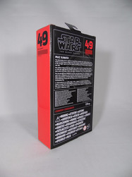Maz is number 49 in the 3rd phase of Black Series releases. The numbering sits in bold black on the gloss red right hand spine. The opposite spine has a wrap round of the window and a repeat of the character name - initially in red small text and behind this a faded grey blown up version.