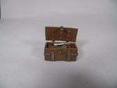 The inside of the chest is a brown sculpted piece of various "junk". There is enough room to place the saber hilt on top and then to close the lid. The lid closes easily but won't hold shut until you clip the clasp piece on the lid over the bracket on the front.