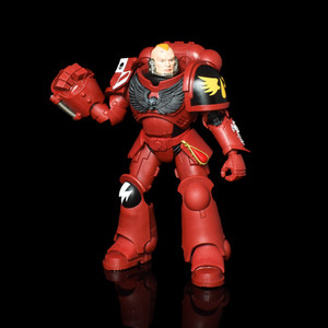 Our Blood Angels Assault Sergeant has 17 points of articulation, including pinned double jointed knees and elbows. While not extensive in its movement due to the bulk of the armour, the Assault Sergeant can hold some varying poses with any of the included weapons, including holding the sword aloft. Sadl,y the shoulder joints in particular are not ratcheted and are therefore prone to drooping when the Power Fist in particular is in situ.