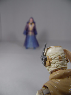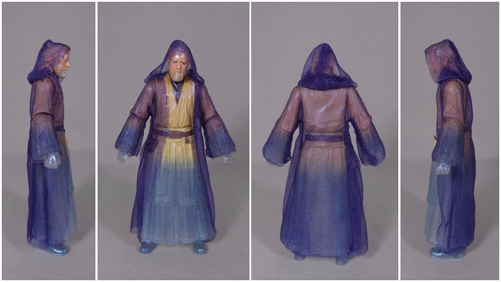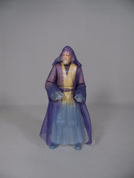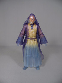 The figure is clad in a sheer purple toned robe, which is not as heavy as the original Obi-Wan cloak. Being see through, this robe adds to the ghostly look as the transparency of the cloak allows you to see the robes and feature underneath and yet it still defines a cloak shape around the figure.