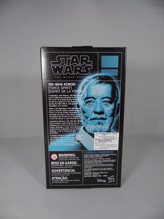 Round the back of the box we get the same Alec Guinness image, now larger, and sitting to the side of some background text which talks around Obi-Wan as a "Legendary Jedi Master" and his role in the Clone Wars and how he acted as a mentor for Luke Skywalker. This is the same identical text as was presented on the Wave 9 release in 2016. There is no mention within this text about the Force Spirit and how Obi-Wan returns in this form after his death at the hands of Darth Vader.