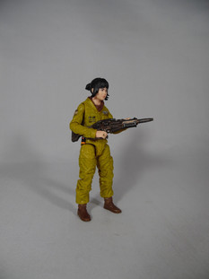 Rose is dressed in her Resistance Tech cover-alls, These are very well executed in that there are loads of creases and folds and they actually do look oversized for Rose and a bit untidy. Where they fail is the coloring which is too bright and needs a wash of weathering to dirty it up.