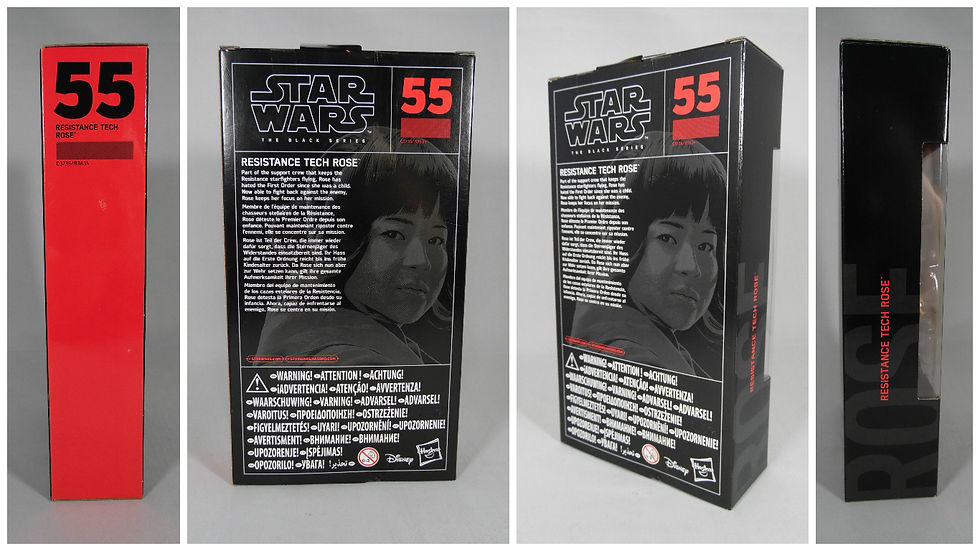 Wave 15 (Phase 3) of the Black Series was the final wave of 2017 and was the third to contain figures from The Last Jedi. While Wave 15 was filled with a number of repacks, it gave us three brand new figures - two from The Last Jedi (plus Jaina Solo) in the guise of Supreme Leader Snoke and the figure we are looking at today, Resistance Tech Rose.