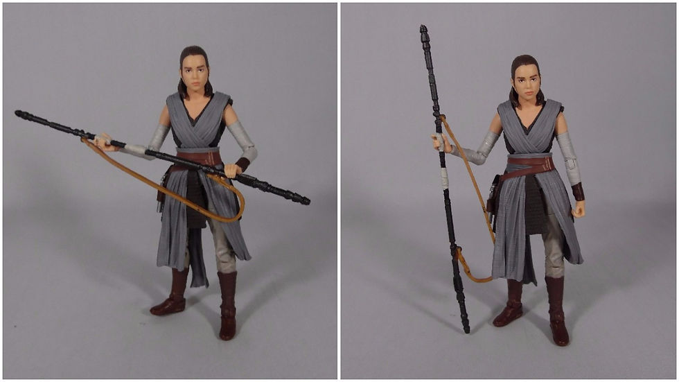 Accessory three is the same staff that we got in the 2015 release and again in the recent Speeder box set. There is nothing wrong with this as a sculpt and it is nicely painted with bandaged hand wraps. The issue with this has always been the strap which is not really flexible, this means the staff doesn't quite sling over Rey's shoulders naturally. It also means that depending how you pose the staff the strap can appear to be defying gravity.
