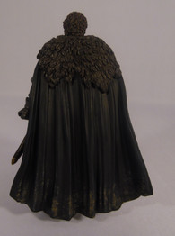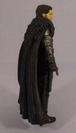 Articulation will always be restricted when you have a bulky armoured figure, and the addition of the cloak sadly restricts Robb even further. The ball jointed head can look up and down a few degrees and can move side to side but is soon stopped in its tracked by the cloak collar. The arms can move upward to almost 90 degrees from the body, and the fur pelt section of the shoulder cloak will move with the arm. The elbow joint moves neatly underneath the armour and the wrist, which is on a peg, can only really rotate rather than bend back and forth. There is a waist joint and you can move Robb's torso a few degrees to either side before the belt and sheath start to catch. Under the skirt of the tunic are double jointed knee joints, which would work with the hip articulation to give a really good range of movement. The issue is the skirt, which blocks the majority of this movement - leaving Robb's only real option for stance as a neutral one. The cloak does also make Robb over balanced to the rear, so you will be thankful of the ankle rockers and the thigh swivel to get that balance right to keep Robb upright.