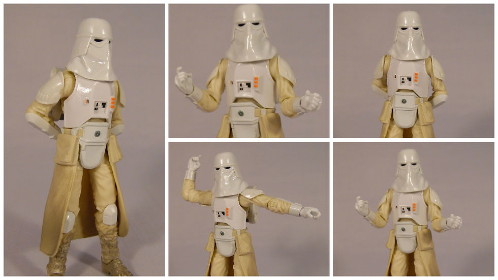 The legs are a different matter unfortunately as they are completely blocked in by the skirt. While not a complete fan of soft goods, you feel a soft good skirt here would have worked so much better to allow the Snowtrooper to get into some more action poses - kneeling and crouching. The leg joints are all there to achieve this - with ball joint hips, double jointed knees and ankle rockers - they are just locked in place by the skirt.