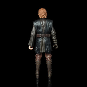 Anakin’s articulation is heavily improved vs the original figure, a figure that suffered terribly with poor leg articulation and stability, as well as with a very visible and ugly neck joint. This new release boasts 19 points of articulation, and uses the latest configuration of joints, including the removal of the often unsightly thigh swivel and adding in rotation at both the knee and at Anakin’s boot-cut. The joints are incorporated into the sculpt, and the elbows and knees are barely intrusive once posed. The legs facilitate a variety of action positions as well as allowing Anakin to crouch, kneel or sit. The ankles are solid and hold Anakin in place once posed.