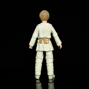 The face is a good likeness to young Anakin (Jake Lloyd) without being spectacular and while photo print has been used, the features remain basic and a bit of throwback to some of the earlier Black Series figures. The hair, a plug-in piece on the head, is sandy-coloured and features a darker wash to bring out the depth of the sculpt.