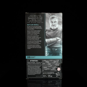 Baylan Skoll is number 9 in the Ahsoka series of the Galaxy Collection, following on from Marrok and preceding his Padawan, Shin Hati. The packaging uses the blue accent colour assigned to Ahsoka releases and this is applied to the front text, and the side and rear artwork. As has been consistent with all the Ahsoka figures the rear text is a simple plot summary for the Ahsoka show rather than giving any details about Baylan himself - either because the info wasn't available to Hasbro in time, or to prevent spoilers.