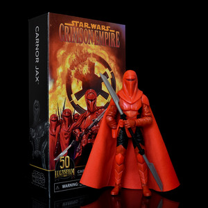 The groundwork for the Crimson Empire characters of Kir Karnos and Carnor Jax was essentially laid in 2017 when Hasbro released the Imperial Royal Guard in the Black Series. The figure was dressed in the flowing red robes we see on screen in the Emperor's Throne Room, but Hasbro chose to give the guards a full sculpted set of Crimson Empire armour underneath adding an extra dimension to the guards.