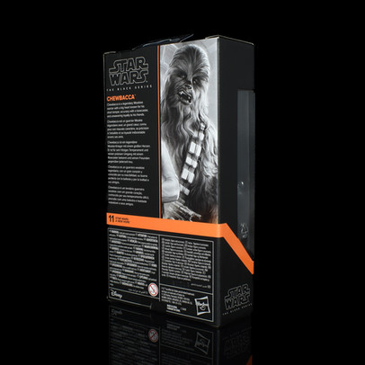 Chewbacca was released in Wave 22 of the Galaxy Collection, alongside Han Solo from A New Hope. Other figures in the wave included Ezra Bridger and a Death Trooper from Ahsoka, and a Gaming Greats release of Nightsister Merrin from Jedi: Survivor. The A New Hope figures feature a deep orange headline colour against the black of the standard box. This orange is used on key text elements and the side artwork, which shows Chewie wielding his bowcaster. Chewbacca is number 11 in the series, connecting his artwork to that of Han Solo at number 10. This creates a neat run of Leia, Luke, Han, and Chewie in the collection for those putting together a collection of the side artwork.