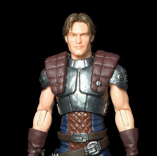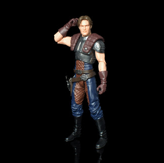 Like the artwork, the figure is based on the 1990s Shadows of the Empire design principles, with Dash a brand new sculpt from the ground up and wearing his chosen flight gear that includes a blue and brown quilted flight suit, gun metal chest armour, quilted brown shoulder pads, leather brown gloves and black gloss boots. Dash is also sporting a gunslinger's belt, similar in style to Han’s with a standard belt, and lower slung holster belt with a working brown holster sitting over his right thigh.