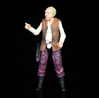 Evazan comes with a single BlasTech SE-14 blaster that fits into his right hand, and when not in use into the holster. The articulation to support posing consists of a pinless upper body and with double jointed pegged knees on the legs thanks to the use of an earlier figure. Posing is fine without being anything special and Evazan can pull of some generic blaster wielding poses, or just as easily be stood next to the bar of the Cantina. A pointing left hand would have been a nice addition so the Doctor could point at bar goers and tell them he doesn't like them.