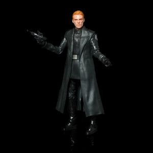 General Hux is the same base figure as released in 2016 wearing his matt black First Order uniform with gloss black boots and a painted plain silver buckle on the belt. Over this is his long coat in a similar colour to the uniform but in a flexible rubberised plastic. Like the uniform, the coat is pretty much left in its base black colour - but it does feature three silver rings around the left arm cuff and a First Order decal on the left shoulder.
