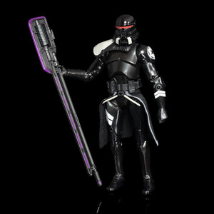 This Purge Trooper is an Electro-Hammer Trooper which means we now have three of the four seen in the game with the Electro-Baton Trooper still not yet created within the Black Series. A brand new Electro-Hammer weapon has been created for the set to finish the look and this consists of a brutal-looking dark grey piece as tall as the figure itself. The edge of the ‘hammerhead’ is trimmed in a bright purple with more purple running down the panels of the main weapon just in front of the ridged grip section.