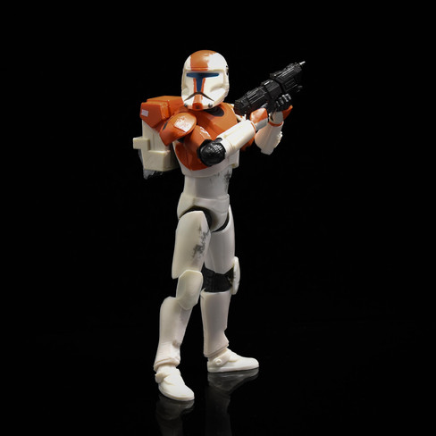 The backpack is also cast in white with more orange added over the top of the main section. There are also two silver-painted panels lower down. Unlike the original 3.75-inch Clone COmmando, the pack on this larger 6-inch version is a solid piece and does not open - this would have been a cool function to include!
