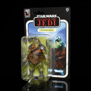The original Gamorrean Guard release from 2018 paved the way for the Deluxe format of larger or more complex figures that we know today. 5 years later, and to mark the 40th Anniversary of Return of the Jedi, the Gamorrean was repacked onto a Kenner-inspired card back and sold as an exclusive release. In the US it was exclusive to Target, while it was available via the Fan Channel retailers outside of the US. While it retained its ‘deluxe’ status in terms of pricing, the card back was the same size as the other 40th Anniversary releases to support in-package collections. The card was based on the original 1983 Kenner card and used the same photo of the Gamorrean and the 1980s Kenner logo. The card back also followed suit with the original figures, carrying a multi-coloured checklist of some of the other Return of the Jedi 40th Anniversary Black Series figures.
