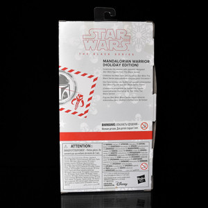 The Star Wars Black Series ‘Holiday Edition’ figures were first released in 2020 and took existing Star Wars Black Series figures and accessories and converted them into Christmas-themed versions. The line is made up of various retailer exclusives and one wave would be spread across availability at different retailers and e-Tailers. It sits outside the main Galaxy Collection but uses the same angled side packaging and has retained window packaging throughout its current run spanning 2020 through to 2023. The box design is themed around a Christmas present with a white base colour incorporating snowflakes, red trim, a red-themed Black Series logo and an Aurobesh ‘gift label’. The Holiday Mandalorian Trooper was part of the 2nd wave of Holiday figures released in 2022. He was a US exclusive to Target stores, while had a wider Fan Channel release in the UK.