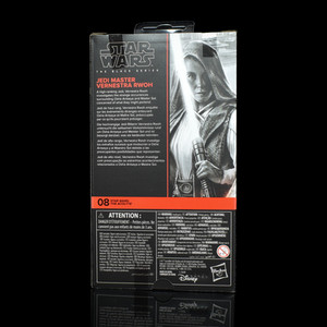 Vernestra is numbered as 08 in The Acolyte collection but she should actually be number 07 as her deep red accented side artwork connects to that of Mae (Assassin) who is 06 and then on to Bazil (Jedi Tracker). The rear of the box carries the same image as the side, while the blurb gives a very brief overview of the Jedi Master’s role in The Acolyte. Inside, the backing card - now colour coded to the collection - also features a background image from the Jedi Temple.