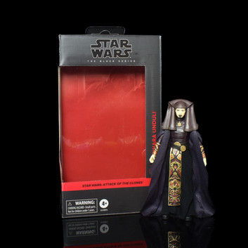 In summary, there is little to fault with the Black Series Luminara Undula release, a figure that is badged from Attack of the Clones, but that will comfortably sit alongside Yoda and Gree in a Revenge of the Sith display or with any of the Clone Wars figures. She is an almost perfect hybrid of soft goods and sculpted parts, recreating her complex robes while not sacrificing much in terms of articulation. The decor is gorgeous in its complexity and a stark contrast in its gold and bronze gloss finish to the darker brown and purple robes. The lightsaber works with the articulation for fighting stances, and one of the only negatives is the lack of a belt hanging option for the saber hilt.