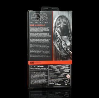 The Acolyte series within the Galaxy Collection features a new red-shaded accent colour and the figures are packed in the new squared-off box style with the numbering now included on both the front and the back of the box. Mae is number 06 in the Acolyte series, following on from Jedi Master Indara and concluding the collection and completing the side art montage at this point in time. The rear of the box features a cropped version of the same side illustration as well as a short piece of background text that is the same on all 6 Acolyte releases from Wave 17 giving us just a synopsis about the show - most likely to avoid spoilers had these figures arrived early.