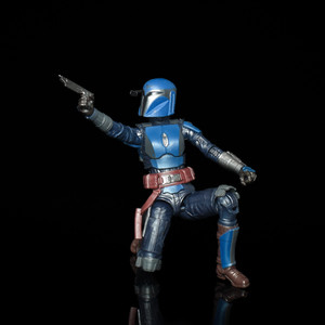 We have a single weapon, a WESTAR-35 Mandalorian Blaster, also exactly as included with both Bo-Katan and Reeves. The sleek weapon has a dull metallic finish with a slightly brighter grip and it can be slotted into either hand on the Nite Owl who retains the dual grips with trigger fingers that originated with Bo-Katan. When not in use the blaster slips into the working holster on the belt.