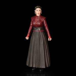Morgan Elsbeth is in the main a new figure, but she does borrow the legs from under her skirt section from the Rise of Skywalker Sith Vision Rey figure. The upper torso is a burgundy finish with the complex patterns of the fabric built into the sculpt and with a lighter red finish applied to the central v-panel. The same colouring extends to the arms, sculpted to look wrapped and with further painted red elements at the wrists and into Morgan’s gloves. The look is finished with the floor-length skirt, an individual softer rubber piece with a red sash painted across the waistband. It is split into four sections across the front & back and each side, supporting a bit of additional leg movement.