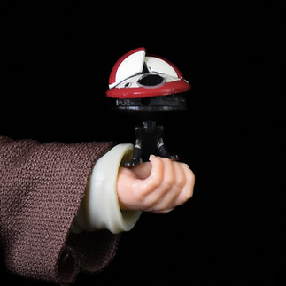 Obi-Wan is also wielding a blaster (how uncivilised) and this is stowed away already in a holster under his robes so is not immediately visible in the packaging. It is a small compact blaster cast in a dark bronze colour and with a painted darker grip. It fits into Kenobi’s right hand which has the trigger finger configuration and also holds well in the holster thanks to a rubberised strap that comes over the hilt and clips into place.