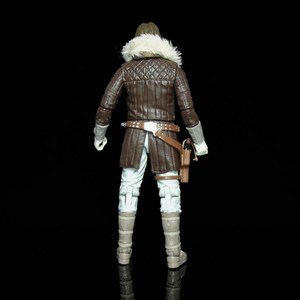 The original Hoth Han figure had the hood up on the figure and a sculpted scarf, this new version saw the scarf be removed and the fur-lined hood recreated in soft goods. This is an individual piece and features a scarf piece in white material, stitched into a brown segment, and then the fur lining. Soft goods are a point of debate among collectors and are usually chosen to ensure articulation is retained on figures who would be constricted were their robes or cloaks to be a molded piece. The decision here therefore is a little bit odd as the soft goods have no bearing on the figure's articulation, and do not quite work with the rest of the figure. The scarf in particular looks poorly made, and while the fur has some aesthetic quality it takes a while to get it positioned around Han’s head.