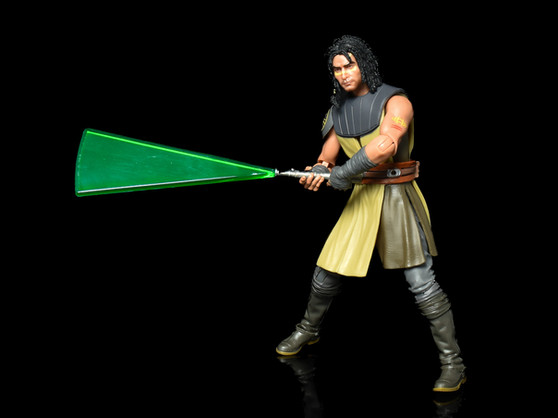 The set comes with two green blades, the first a standard straight version in translucent green that slots into the light saber emitter. The other is the ‘swoosh’ effect, an effects piece that is a theme across the full wave. It is also translucent green, but triangular in shape to reflect a lightsaber blade as it moves through the air. This clips in using the same peg socket as the standard blade, and for those that like to use dynamic effects, it looks particularly effective once Quinlon is posed mid-move. Unlike a couple of others of these ‘swoosh’ blades, Quinlon’s saber hilt is robust, and there is no immediate or obvious issue with the heavier ‘swoosh’ blade drooping.