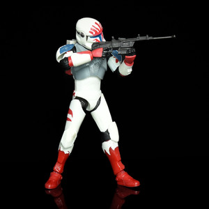Sev has a single blaster rifle, another configuration of the DC-17M unique to him with an extended barrel protruding from the stocky main body of the weapon. The piece is black with sculpted detail but no paint. It can only be held in the right trigger hand, while the left can cradle the barrel to some extent. Articulation supports a number of posing possibilities including more dynamic action shots. There are 18 joints in total with the butterfly shoulders a miss. The figure also still uses the fixed knee armoured, so when the knee is bent the armour doesn’t move with it which can look odd.