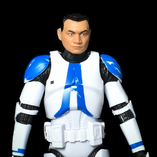 The figure comes with a standard Clone Trooper likeness of Temura Morrison, with a flattop hair style in jet black and face printed features over the base flesh colour of the head. This is not necessarily accurate to the scenes in Revenge of the Sith, but is now fairly standard fare with any Clone Trooper issued release.