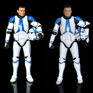 Our 501st Tactical Ops Clone Trooper is wearing the Phase II armour from Revenge of the Sith, as seen when they marched upon the Jedi Temple on Coruscant. The figure uses the latest iteration of the Clone Trooper body with gloss white armoured panels connected by black, ridged joints and connections that also reflect the Clone’s undersuit. The 501st markings are added in a blue colouring, and done in a way to reflect their battlefield application, so the lines are not completely true, and the paint itself is scratched and worn.