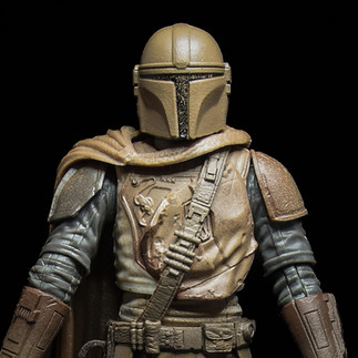 Mando takes the original 2019 release with the older beat-up armour and gives it an Arvala-7 makeover. Essentially, this means a new chest piece showing the damage caused by the Mudhorn and an all-over mud-covered paint job. There is a further detail update on the figure in that the right pauldron is updated from the original Shoretrooper piece to the Beskar cast pauldron from episode 1. The original figure did not have this - it has been translated across from the Beskar Mandalorian release.